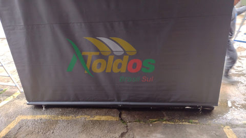 Cortina retrátil ideal para proteção de áreas abertas que tenham somente a cobertura, tambem muito usada para logo marcas e marketing